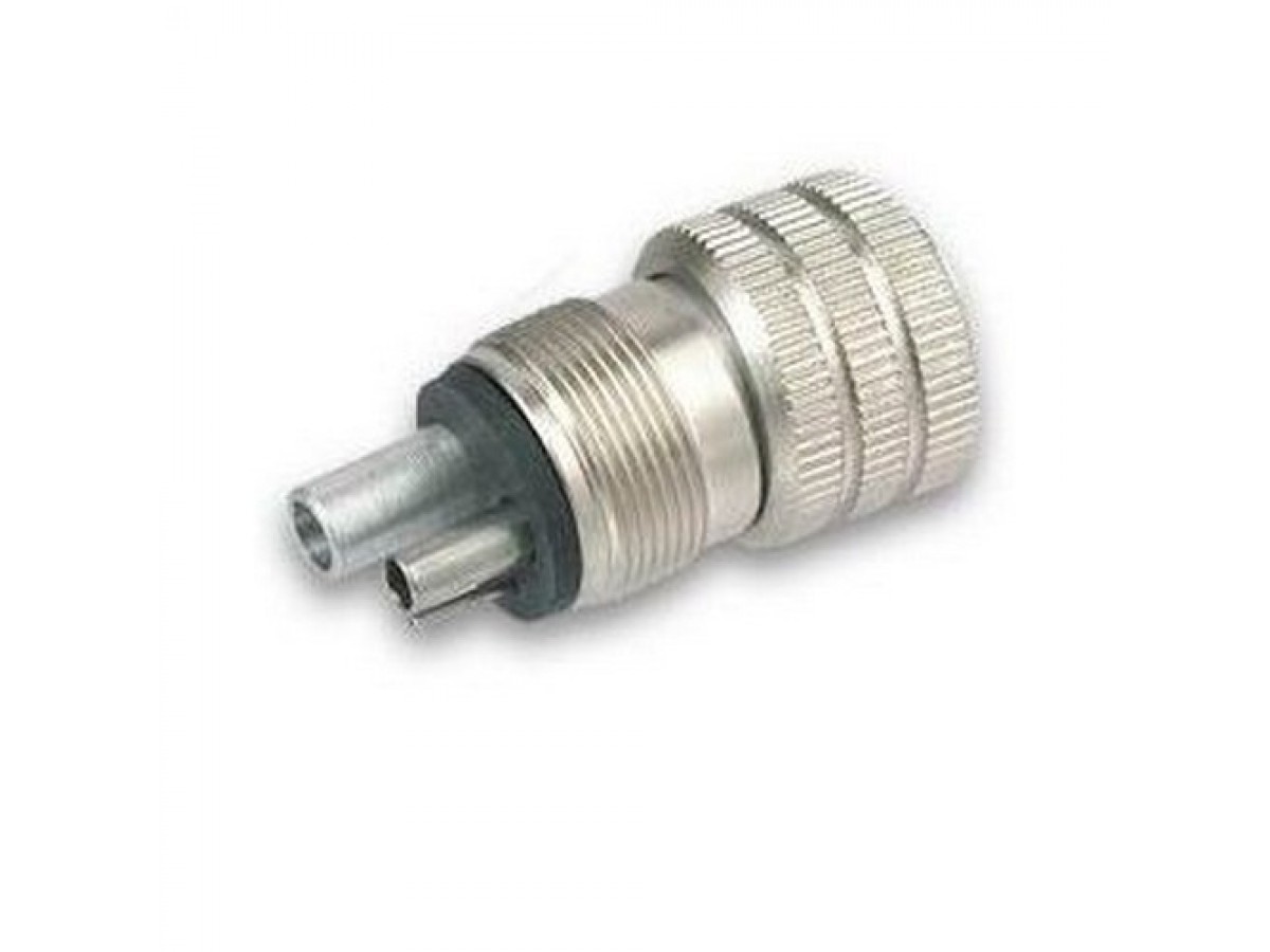 Переходник М4-В2 предназначен для соединения шланга (установки), имеющего 2-х канальное присоединение BORDEN (B2), с турбинным наконечником или пневматическим микромотором с 4-х канальным присоединением MIDVEST (M4). Производитель: КМИЗ, Россия.