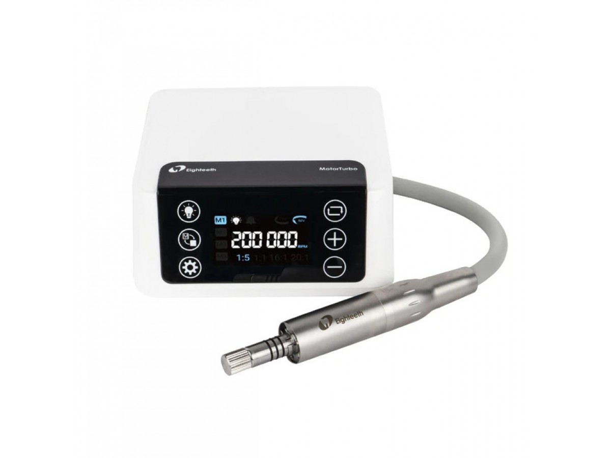 MotorTurbo – портативный бесщеточный электрический микромотор с фиброоптикой, в комплекте с блоком управления и шлангом. Производитель: Eighteeth, Китай.