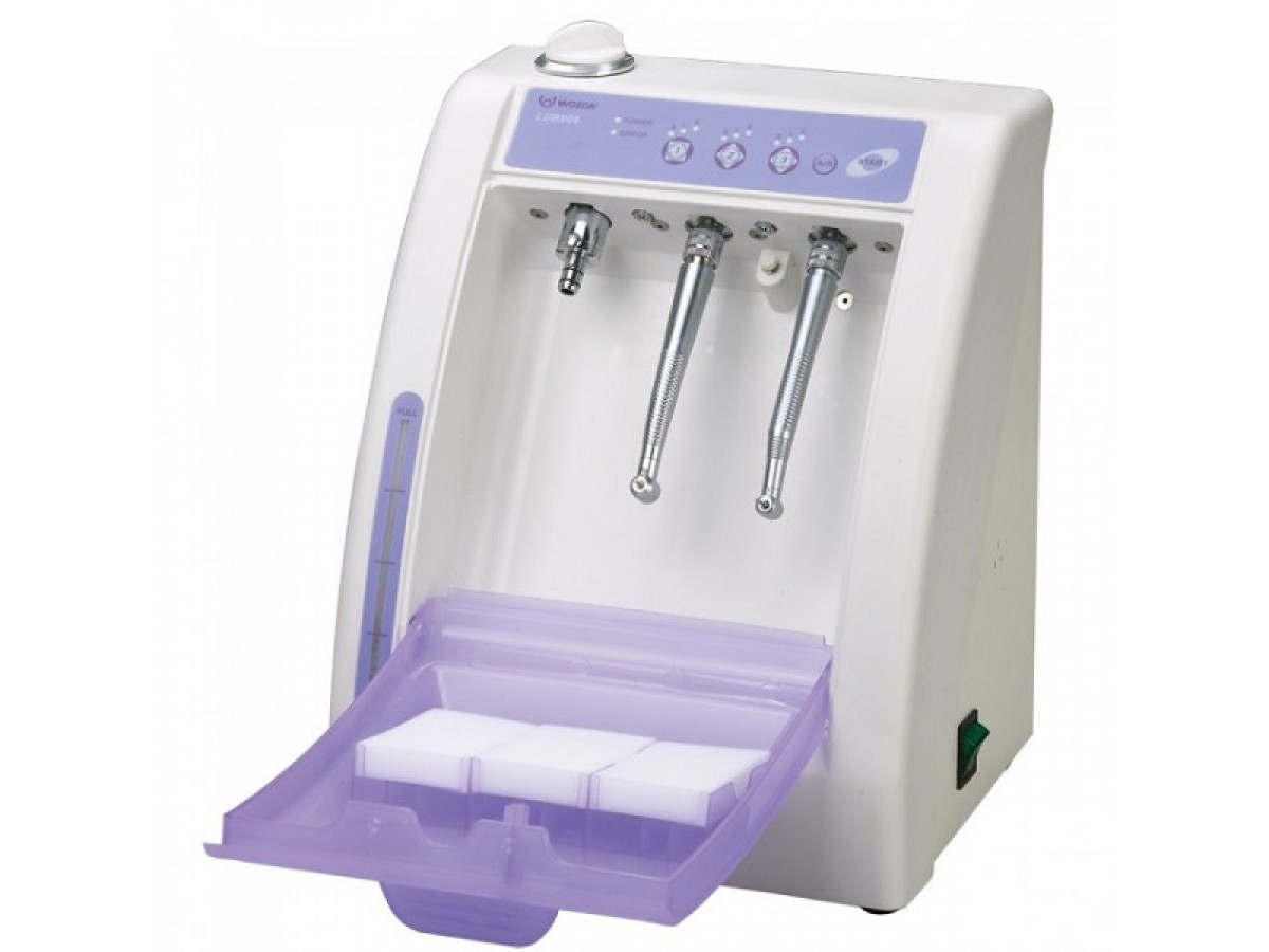 Woson LUB909 - качественный аналог аппарата NSK Care3 Plus. Одновременная чистка и смазка до 3-х инструментов! Устройство для предстерилизационной смазки наконечников (LUB 909) производит очистку и смазку 3-x инструментов (два турбинных высокоскоростных наконечника и один низкоскоростной инструмент: мотор, прямой или угловой наконечник) перед их стерилизацией в автоклаве. Отличительной особенностью является упрощенное наполнение емкости маслом, индикатор количества масла находится в резервуаре. Передняя панель для удобной очистки – съемная. Производитель: Woson (Китай)