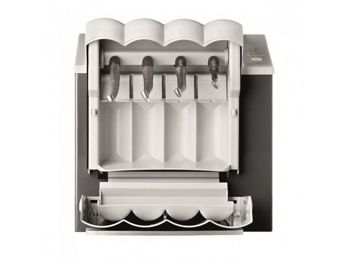 KaVo QUATTROcare® Plus 2124A - программно-управляемый прибор для чистки и смазки турбинных, угловых наконечников, а также головок к наконечникам. Прибор дополнительно подключается к источнику сжатого воздуха для дополнительной продувки спрей каналов и удаления излишков масла. Полностью автоматизированная система.