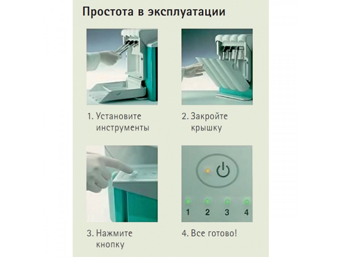 - Качественная и гигиеничная обработка четырех инструментов в течение 60-ти секунд!
