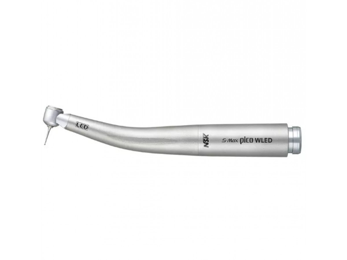 Турбинный наконечник S-Max pico WLED от компании NSK с оптикой, для боров с коротким/очень коротким хвостовиком, прямое подсоединение к переходнику W&H. Для боров с коротким / очень коротким хвостовиком. Одноточечный спрей. LED Свет. Инновационный турбинный наконечник с ультраминиатюрной головкой и суперкомпактным корпусом