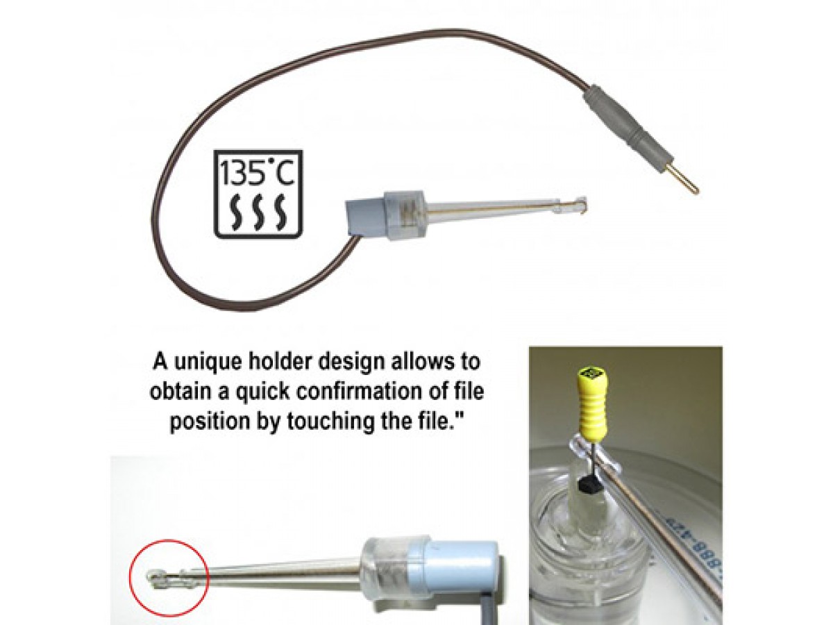 - Используется в качестве зажима активного электрода (файла) при проведении процедур апекслокации, депофореза, электрофореза и анодной стерилизации.
