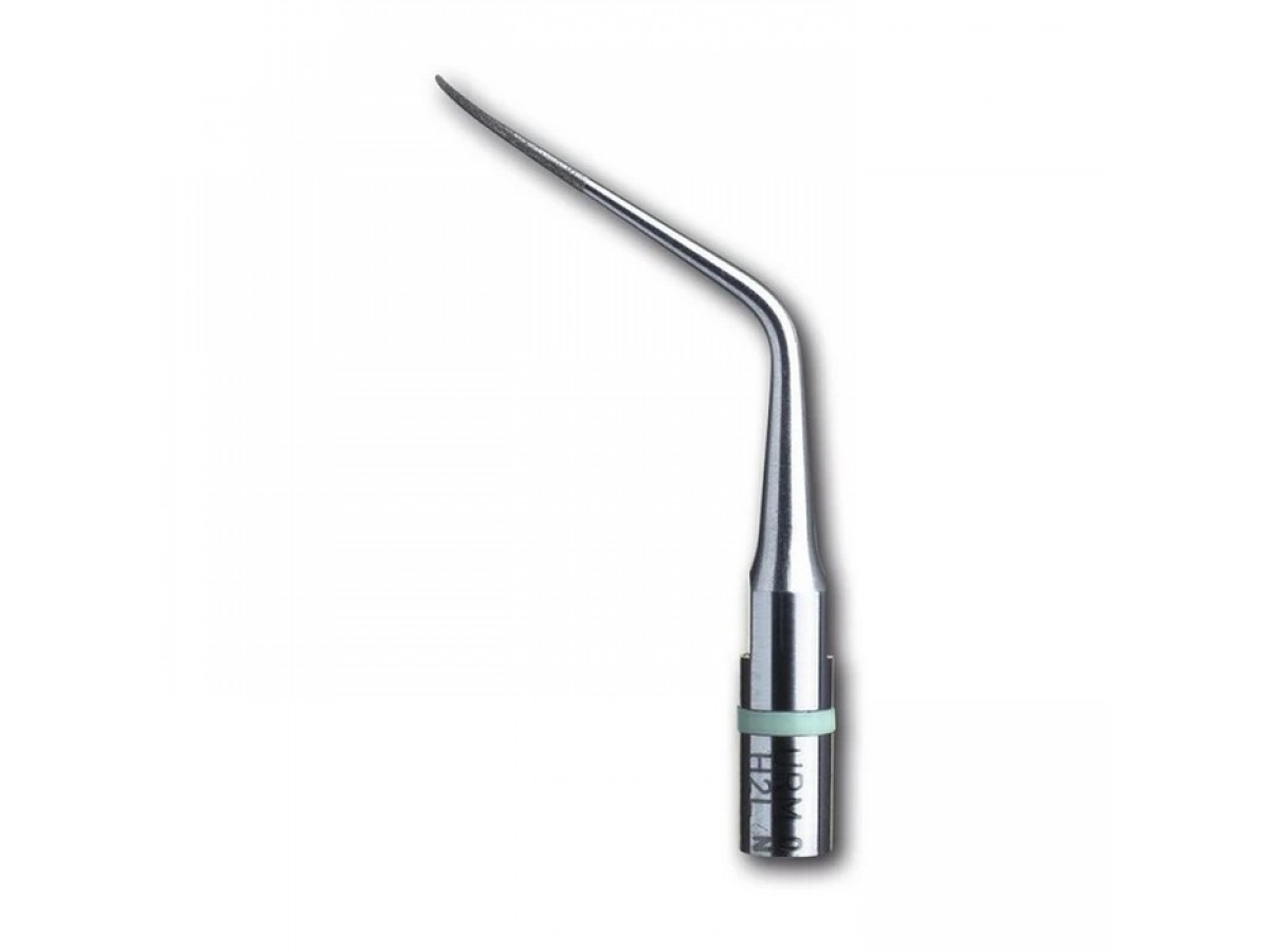 Пародонтологическая насадка с алмазным напылением для фронтальной группы зубов верхней и нижней челюсти. Имеет круглое сечение с переменным диаметром и 2 изгиба функционального стержня. Производитель: Satelec Acteon Group, Франция.