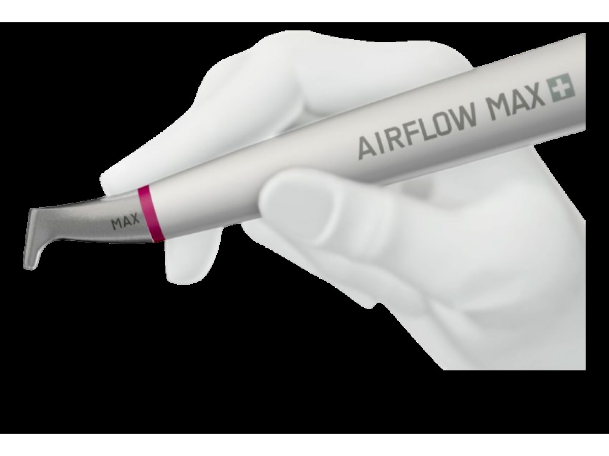 Air-Flow Max Handpiece наконечник производства EMS с новой технологией Guided Laminar Air-Flow, используется для удаления налета и раннего зубного камня с помощью пескоструйной обработки. Производитель: EMS, Швейцария.