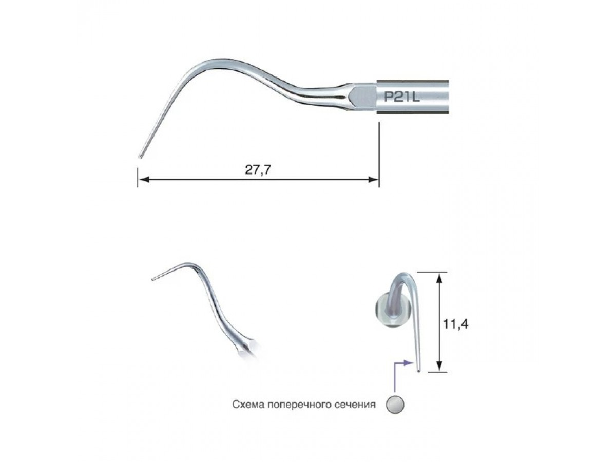 Насадка P21L-E с небольшим изгибом влево предоставляет простой доступ к смежным поверхностям моляров. Предназначена для удаления десневой биопленки. Производитель: NSK Nakanishi, Япония.