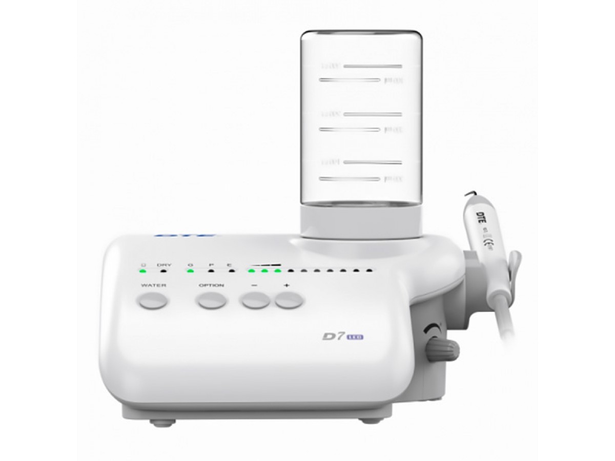 - Скалер DTE-D7 LED имеет возможность использования растворов (хлоргексидин, гипохлорид натрия), в отличие от других моделей скалеров