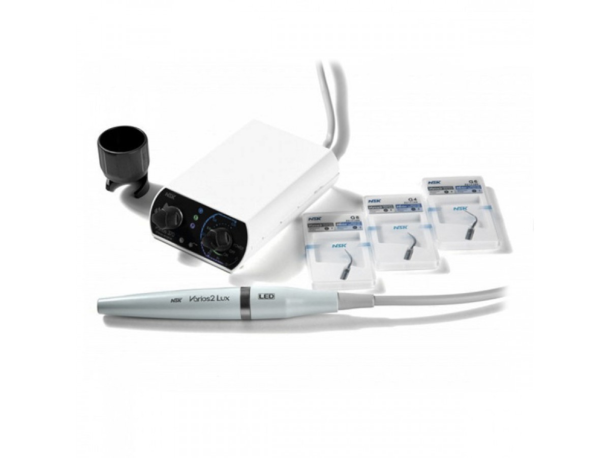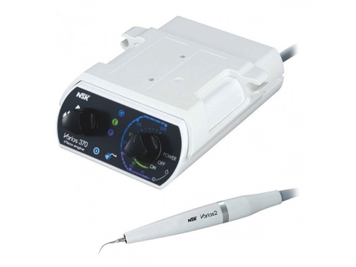 Varios 370 LUX – многофункциональный портативный ультразвуковой скалер (с оптикой), применяется для удаления зубного камня, выполнения пародонтологических и эндодонтических манипуляций и минимального вмешательства. Имеются наконечники с оптической системой и без неё. Широкий выбор насадок (80 на данный момент) для различных манипуляций. Разработан как портативный прибор, который легко установить на любую стоматологическую установку. Он прост в управлении и может использоваться для широкого спектра клинических применений. Производитель: NSK Nakanishi, Япония.