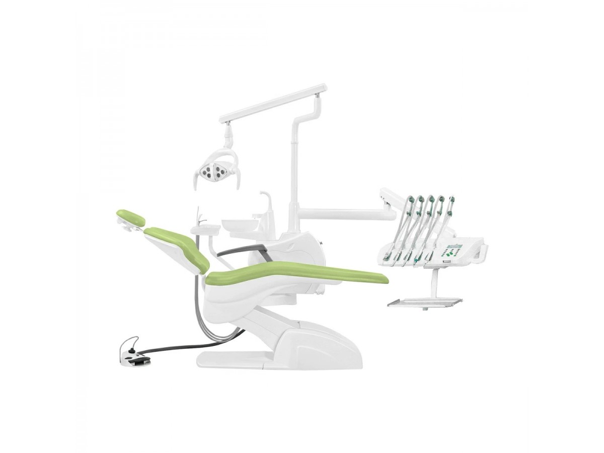 Установка стоматологическая QL2028 (Pragmatic) с верхней подачей с мягкой обивкой цвет М07 зелёный. КОМПЛЕКТ 2 СТУЛА. Производитель: Fengdan, Китай.