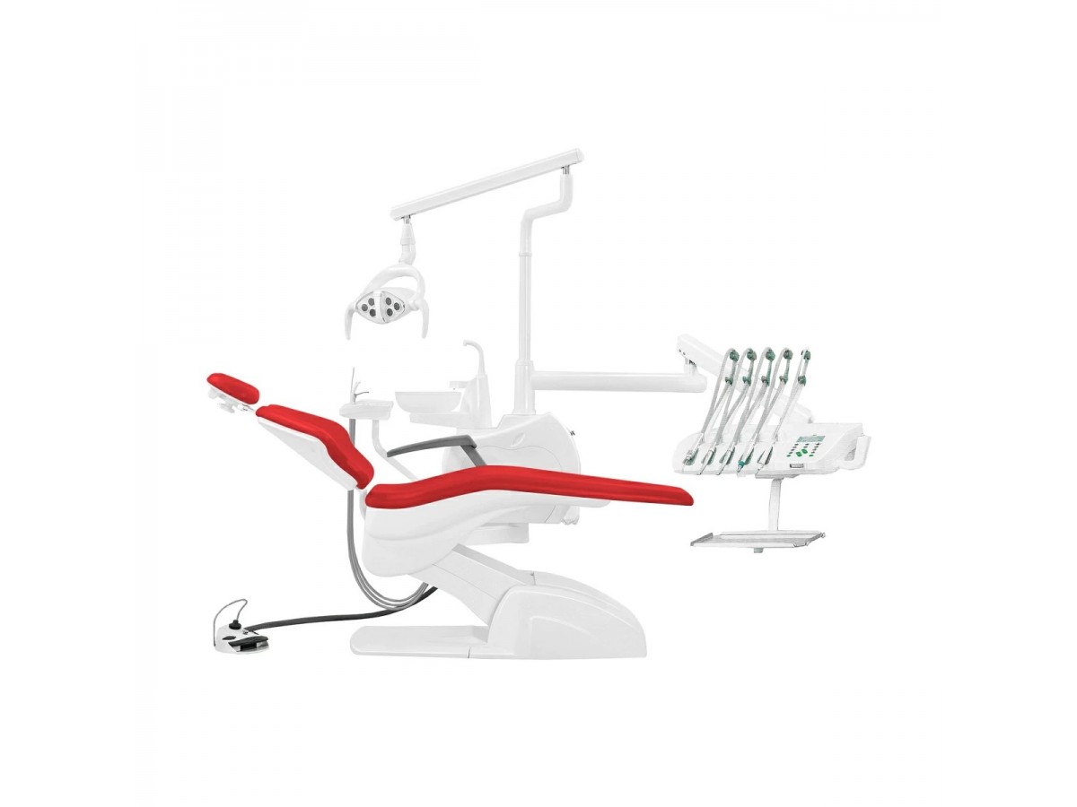 Установка стоматологическая QL2028 с микромотором (Pragmatic) с верхней подачей с мягкой обивкой цвет М02 красный. КОМПЛЕКТ 2 СТУЛА. Производитель: Fengdan, Китай.