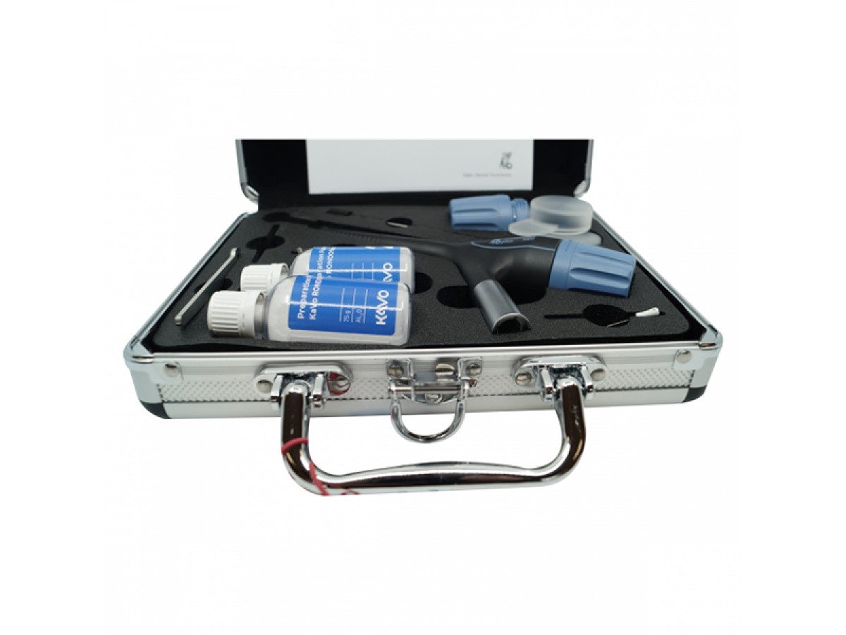 Мощный и деликатный метод. Частицы порошка ускоряются до скорости 20 м/с. При столкновении с зоной препарирования происходит бережная абразивная обработка тканей зуба. Производитель: KaVo, Германия.