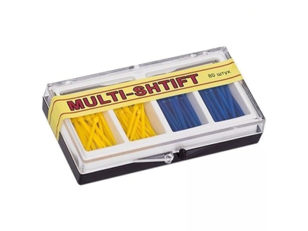Штифты беззольные ассорти 2-х видов (синие+желтые) MULTI-SHTIFT. Производитель: РуДент, Россия.