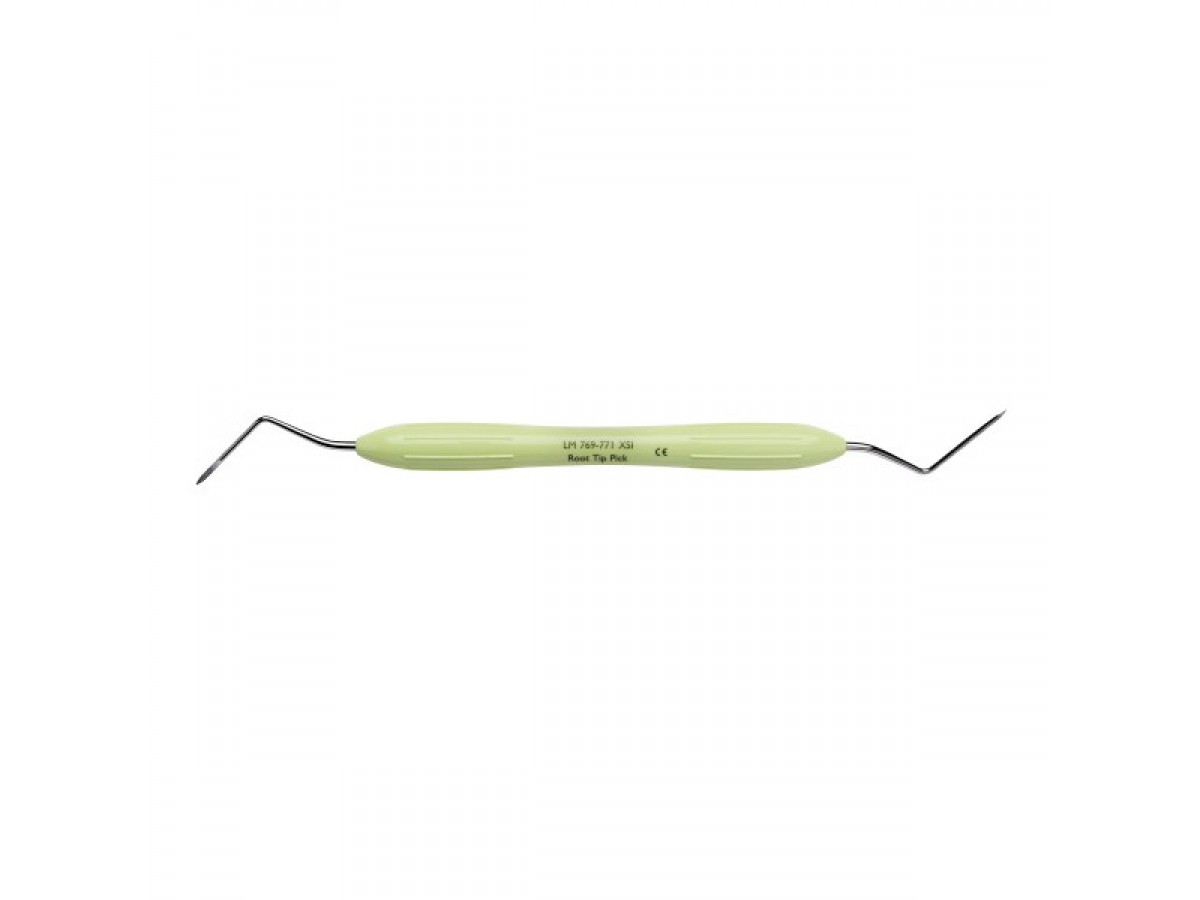 Инструмент для удаления корней LM 769-771 Root Tip Pick - тонкий и длинный инструмент для удаления кончиков корня, оставшихся после удаления зуба. Хорошо подходит для работы в труднодоступных областях. Этот инструмент дополняет люксаторы и элеваторы LM. Производитель: LM, Финляндия.