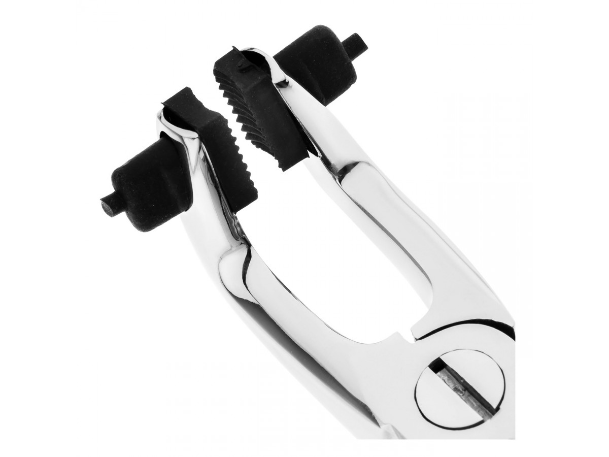 - На внутренних поверхностях щечек щипцов располагаются резиновые сменные накладки, препятствующие соскальзыванию рабочей части инструмента, а также предотвращающие появление сколов и царапин на облицованной поверхности коронок.