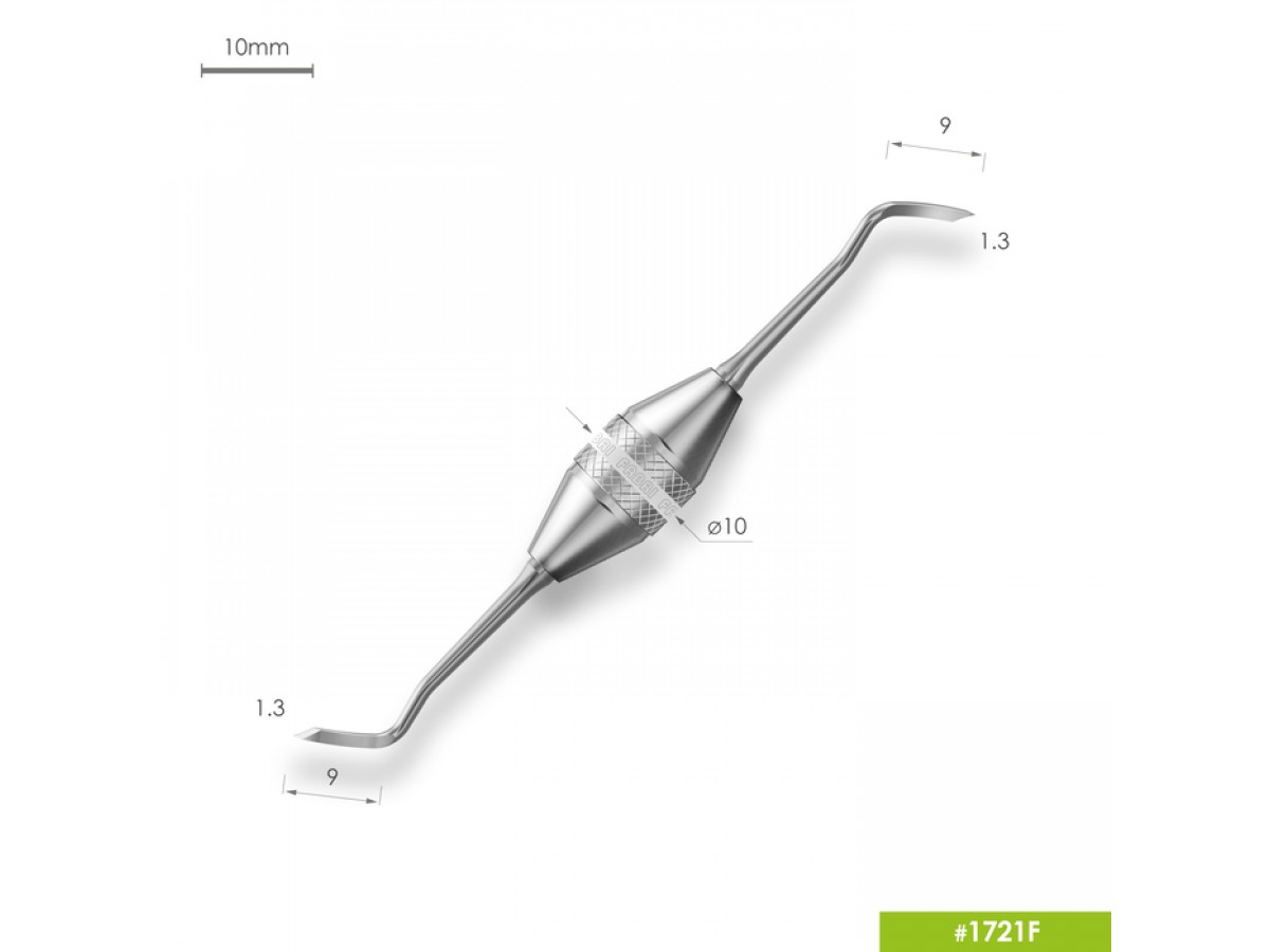 Дистальный триммер десневого края (эмалевый нож). Применяется для окончательного препарирования внешних краев полости, удаления истонченных эмалевых стенок, а также для препарирования уступа под коронку. Ширина режущей кромки 1.3mm. Производитель: Fabri, Россия.