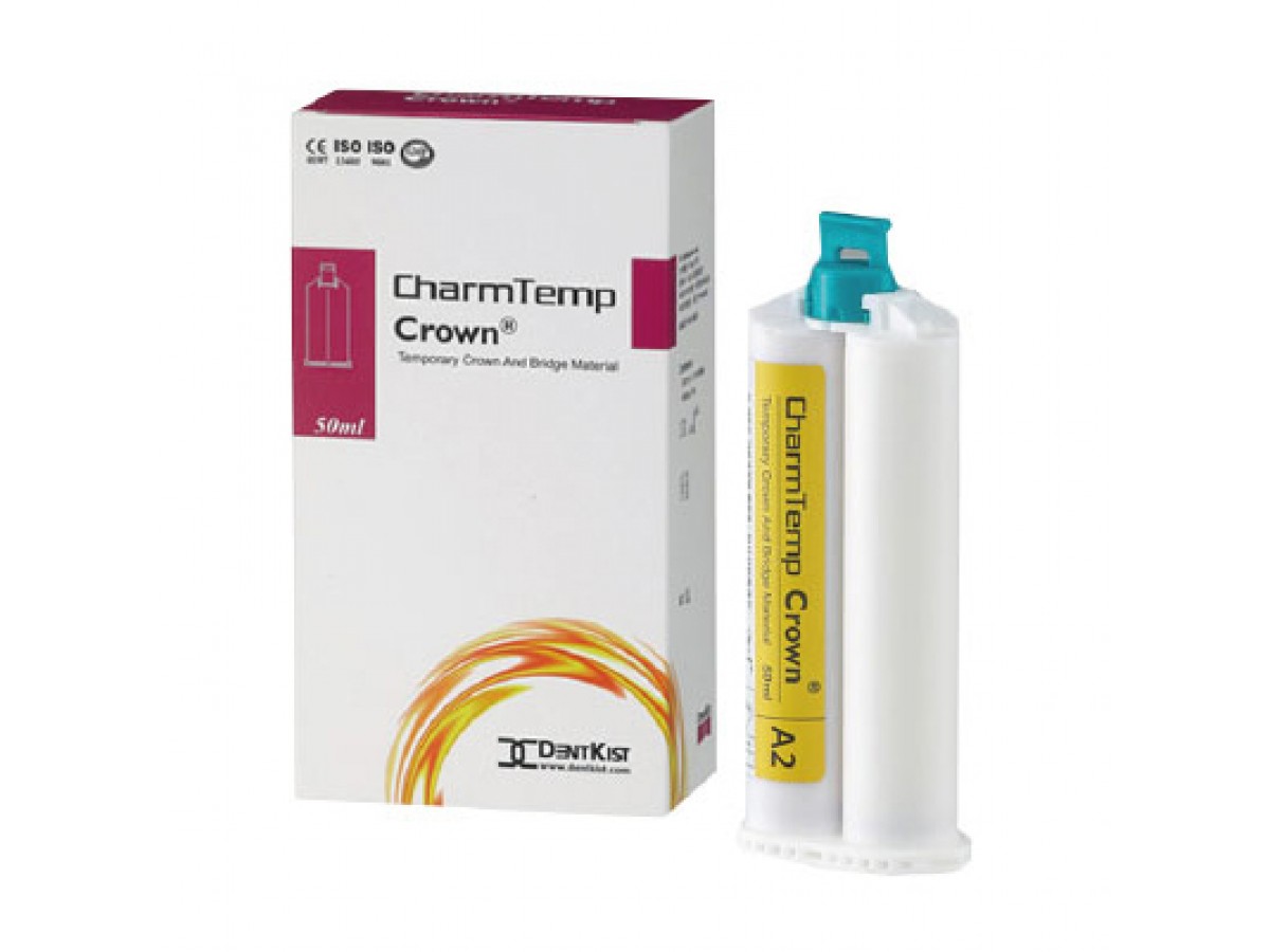 CharmTemp Crown (ЧамТемп Краун) – материал полимерный восстановительный, тип 1 по ISO 10477 - самоотверждаемая смола, непрозрачная (имеет шесть оттенков). Расцветку (оттенок) материала CharmTemp Crown после отверждения определяют по электронному прибору для определения цвета по шкале «Вита». Производитель: DentKist, Корея.