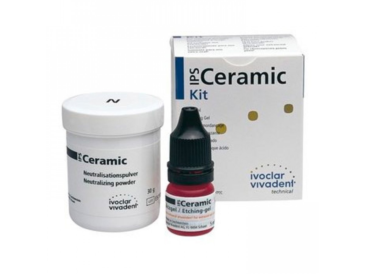 IPS Ceramic Etching Gel Kit протравочный гель, набор, служит для создания ретенционной поверхности на цельнокерамической реставрации в рамках подготовки к фиксации. Гель усиливает силу сцепления между фиксирующим композитом и керамической поверхностью. Плавиковая кислота (фтороводородная кислота, фтористоводородная кислота, гидрофторидная кислота) — водный раствор фтороводорода (HF). Производитель: Ivoclar Vivadent, Лихтенштейн.