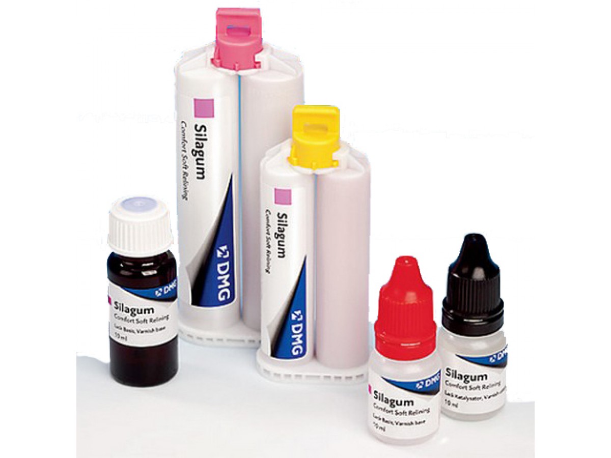 SILAGUM AV Comfort INTRO (Силагум АВ Комфорт Интро) - постоянный материал для мягких подкладок для полных и частичных съемных протезов, стартовый набор. Производитель: DMG, Германия.