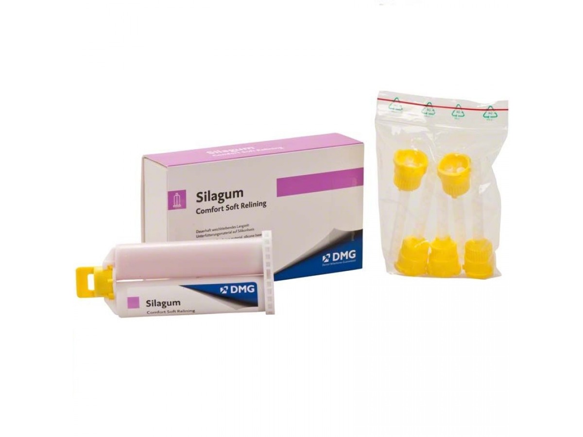 Silagum Comfort (Силагум Комфорт) - перебазировочный материал на основе А-силиконов мягкой итоговой консистенции. Производитель: DMG, Германия.