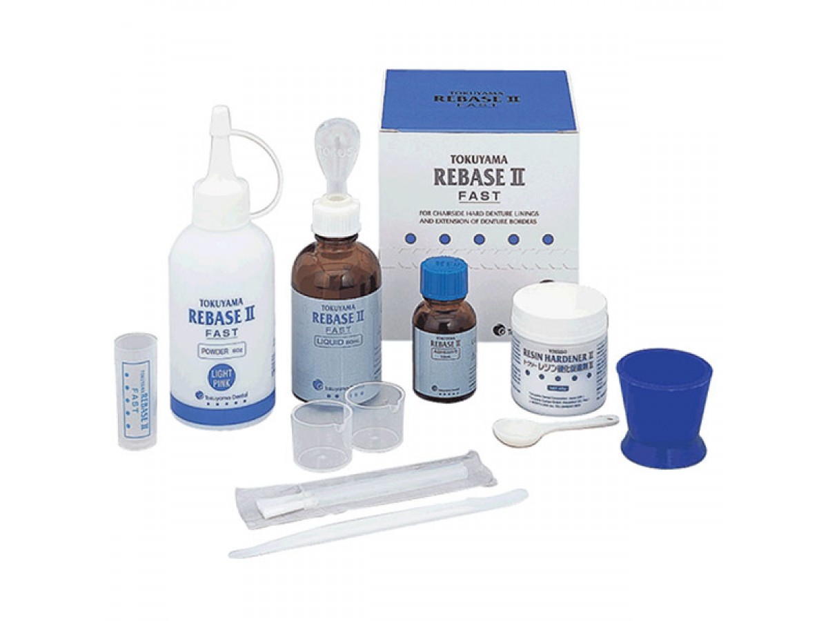 Rebase II (Ребейз II) - жесткий подкладочный материал для перебазировки съемных протезов и расширения краев протеза. Производитель: Tokuyama Dental, Япония.