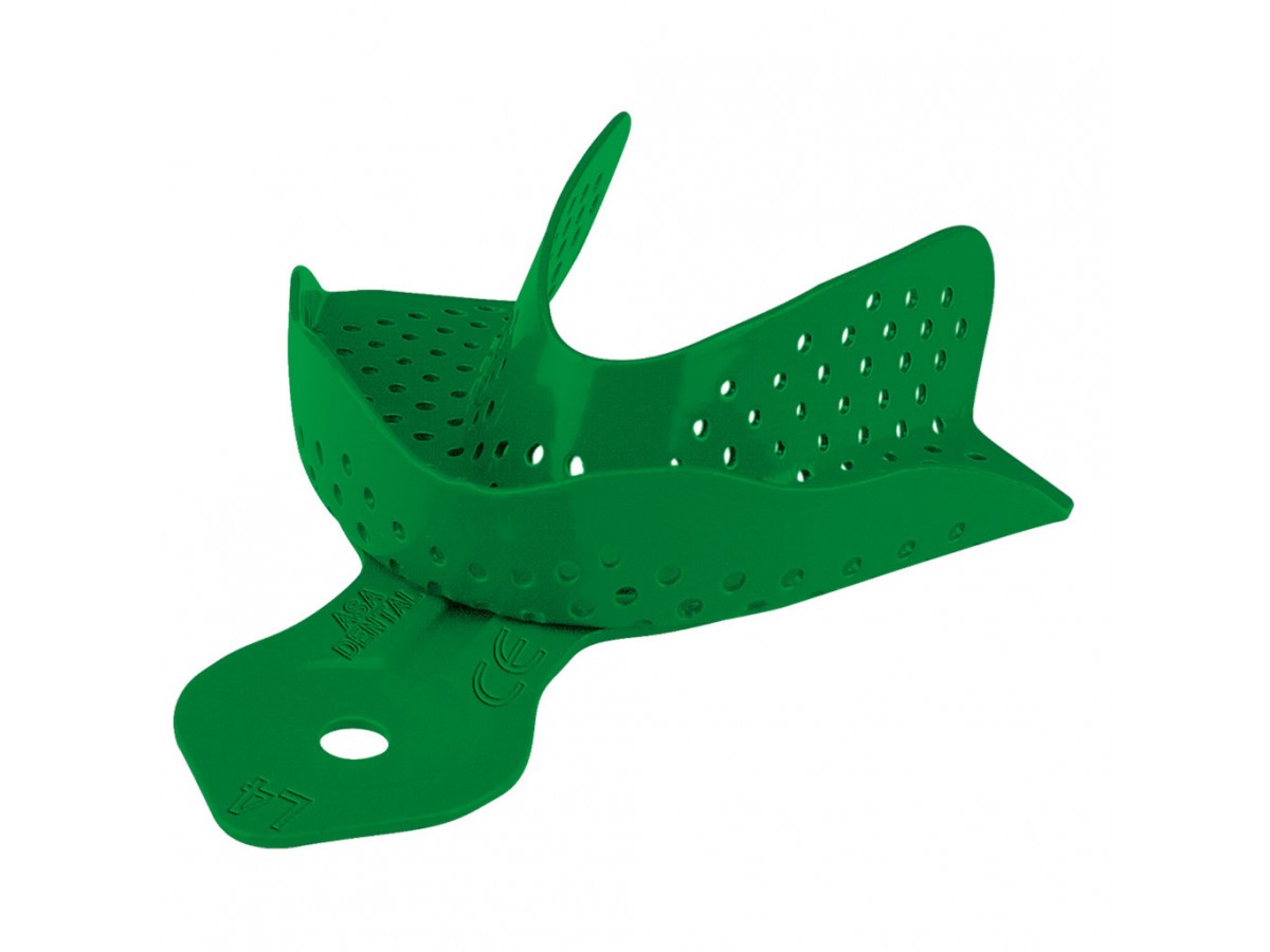 Ложка слепочная нижняя очень большая (XL) с перфорацией без бортиков, алюминий (зеленая). Производитель: Asa Dental, Италия.
