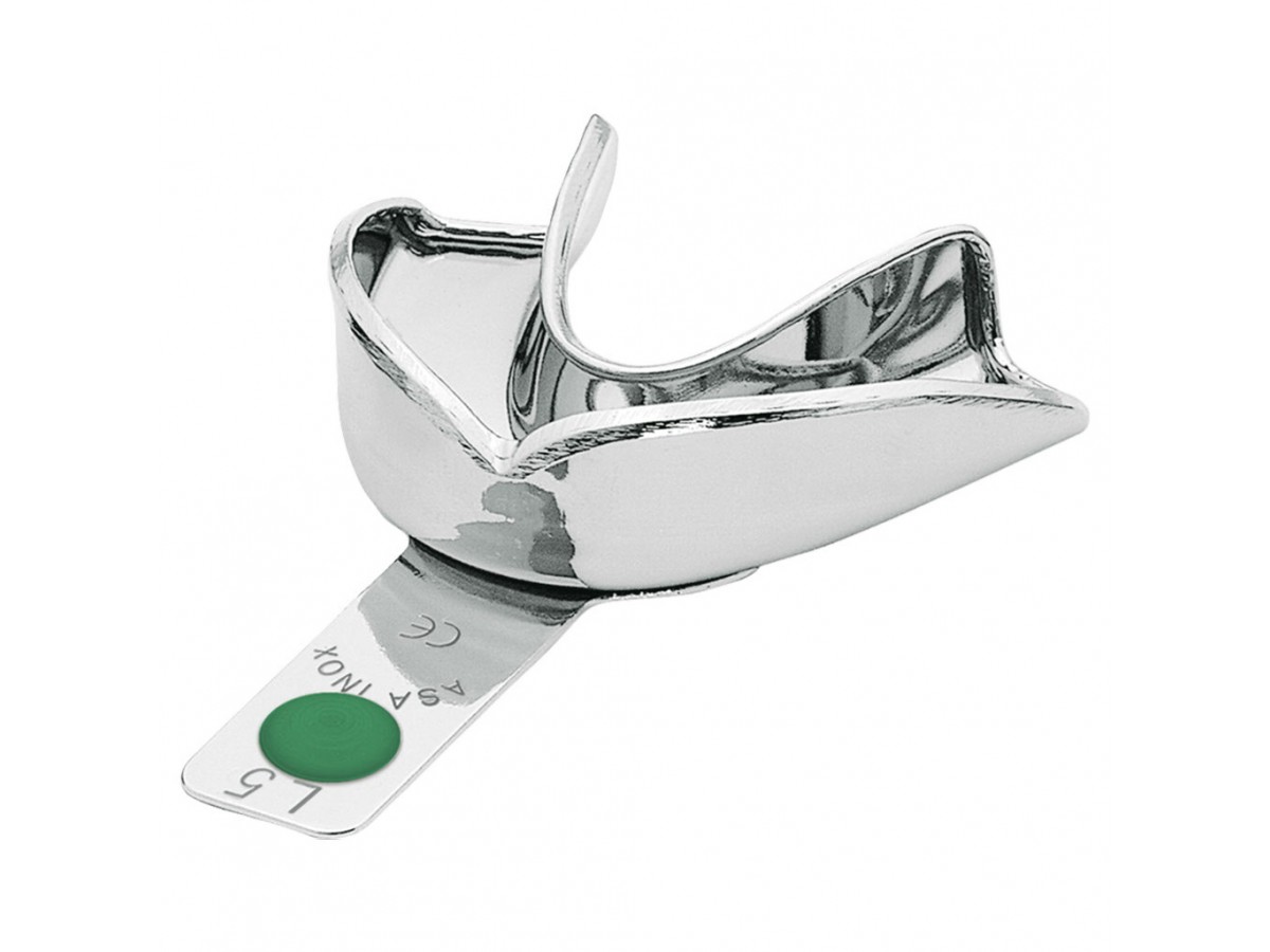 Ложка слепочная нижняя средняя (L) без перфорации с бортиками 76*59 мм. С силиконовой цветокодированной вставкой для более легкого извлечения слепочной ложки из полости. Производитель: Asa Dental, Италия.