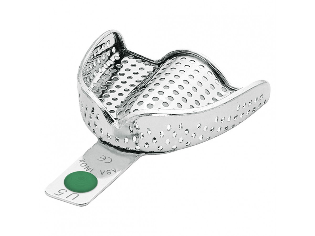 Ложка слепочная верхняя большая (L) с перфорацией 71*60 мм. С силиконовой цветокодированной вставкой для более легкого извлечения слепочной ложки из полости. Производитель: Asa Dental, Италия.