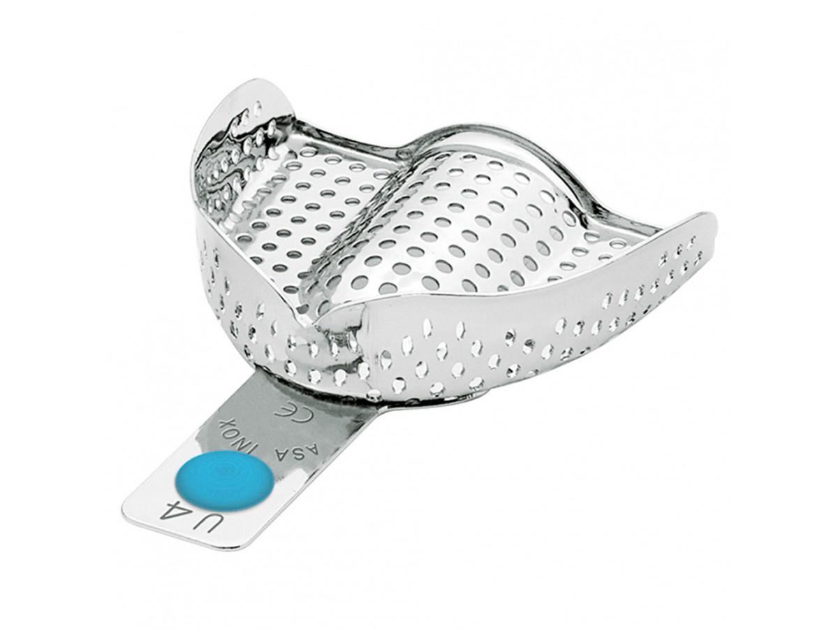 Ложка слепочная верхняя средняя (M) с перфорацией без бортиков 69*57 мм. С силиконовой цветокодированной вставкой для более легкого извлечения слепочной ложки из полости. Производитель: Asa Dental, Италия.