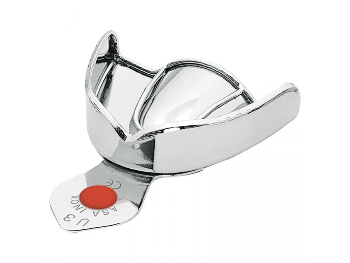 Ложка слепочная верхняя средняя (M) без перфорации с бортиками 71*55 мм. С силиконовой цветокодированной вставкой для более легкого извлечения слепочной ложки из полости. Производитель: Asa Dental, Италия.