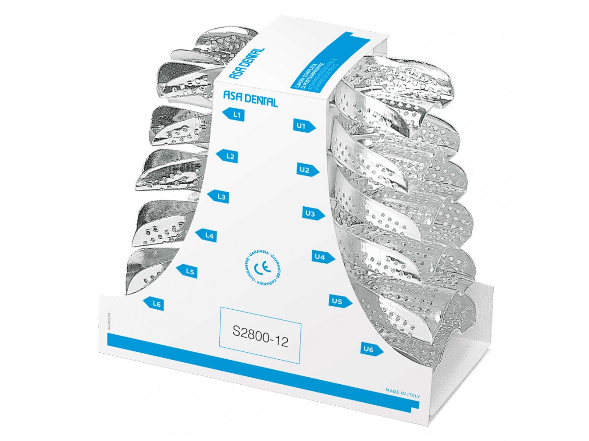 Ложка слепочная, набор 12 штук, с перфорацией без бортиков алюминиевая. Производитель: Asa Dental, Италия.