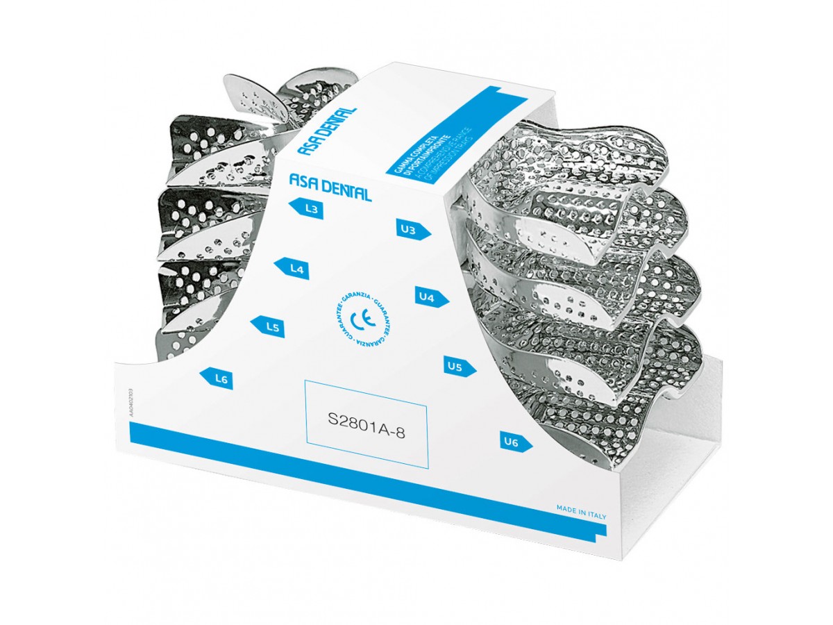 Ложка слепочная, набор 8 штук, с перфорацией без бортиков. Производитель: Asa Dental, Италия.