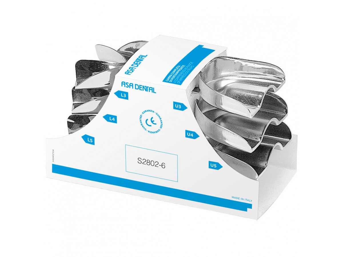 Ложка слепочная без перфорации без бортиков, набор 6 штук (S,M,L верхние и нижнии). С бортиком. С пластиковым цветокодиковынным кружком, удобно держать при снятии слепка. Производитель: Asa Dental, Италия.