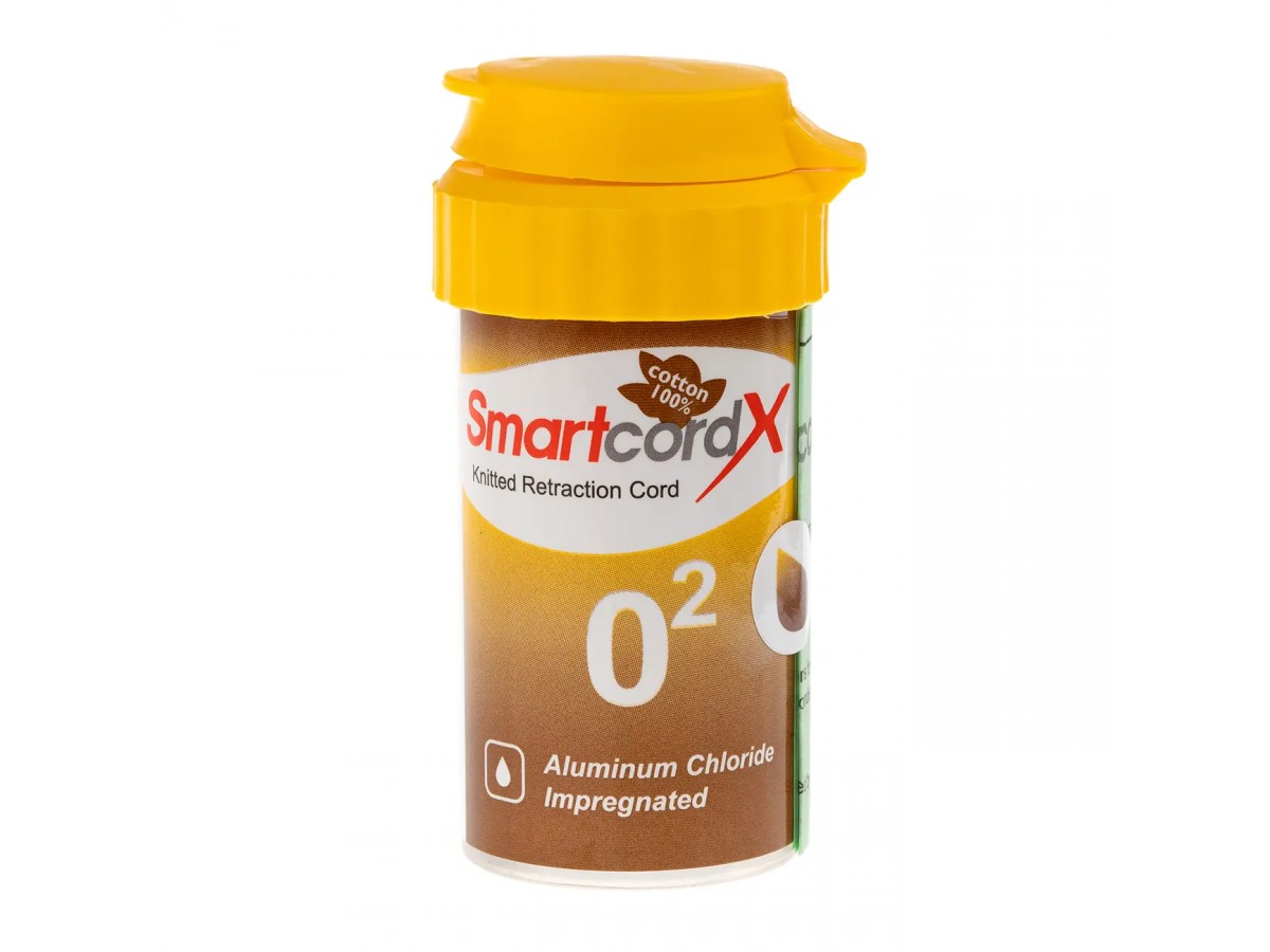 Smartcord X – это ретракционная вязаная нить из 100% хлопка пропитанная гексагидратом хлорида алюминия 1.2 ± 0.8 мг на дюйм. Хлорид алюминия наименее раздражающий медикамент, используемый для пропитки нити, поэтому очень эффективен для временной ретракции десны и гемостаза десневого края. Прноизводитель: Eastdent, Южная Корея.