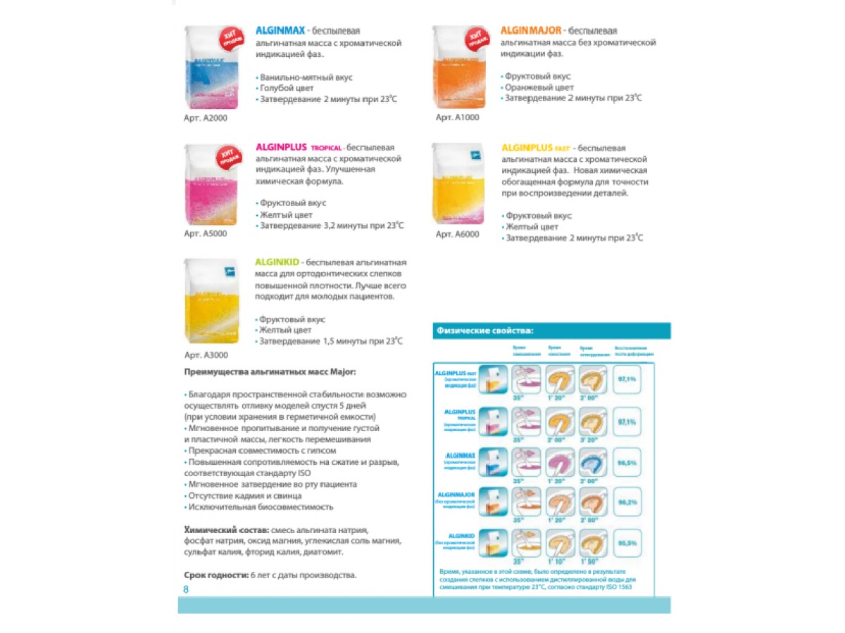 Слепочная масса альгинатная AlginPlus Fast - высокоточная альгинатная масса с хроматической индикацией фаз. Новая обогащенная химическая формула для повышенной точности. С хроматической индикацией фаз. Производитель: Major Dental, Италия.