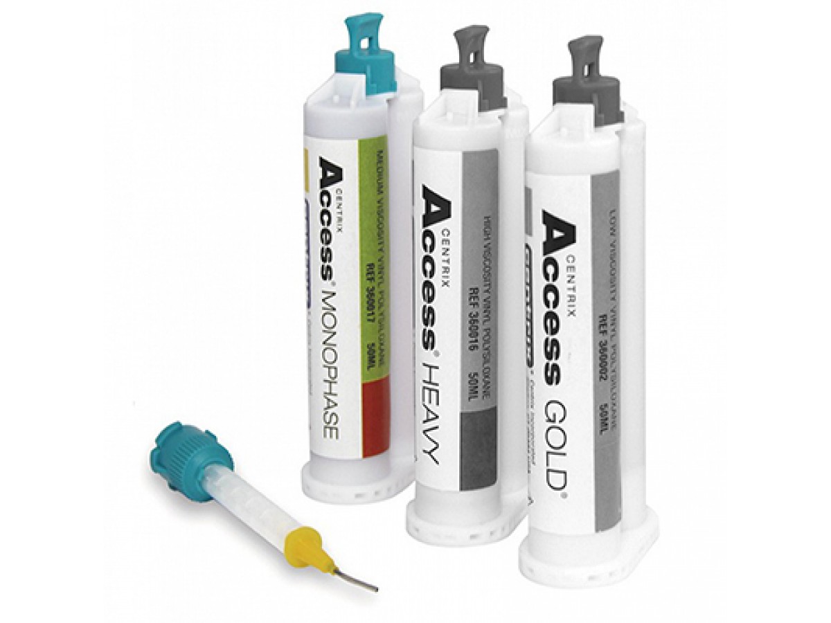 Не растекающийся, средней вязкости. Одноэтапная оттискная техника. Остается на месте при загрузке обеих ложек на верхнюю и нижнюю челюсти; делает ложку устойчивой и предотвращает искажение. Наносится при помощи смешивающей канюли SuperMixer™. Материал имеет гидрофильные добавки для высокой точности и малого угла контакта. Производитель: Centrix, США.