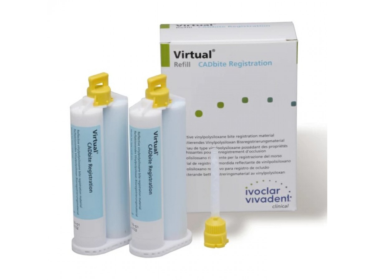 Virtual CADbite - это сканируемый материал для регистрации окклюзии, то есть может быть использован для получения оптического оттиска при изготовлении реставраций с помощью CAD/CAM системы. Производитель: Ivoclar Vivadent, Лихтенштейн.