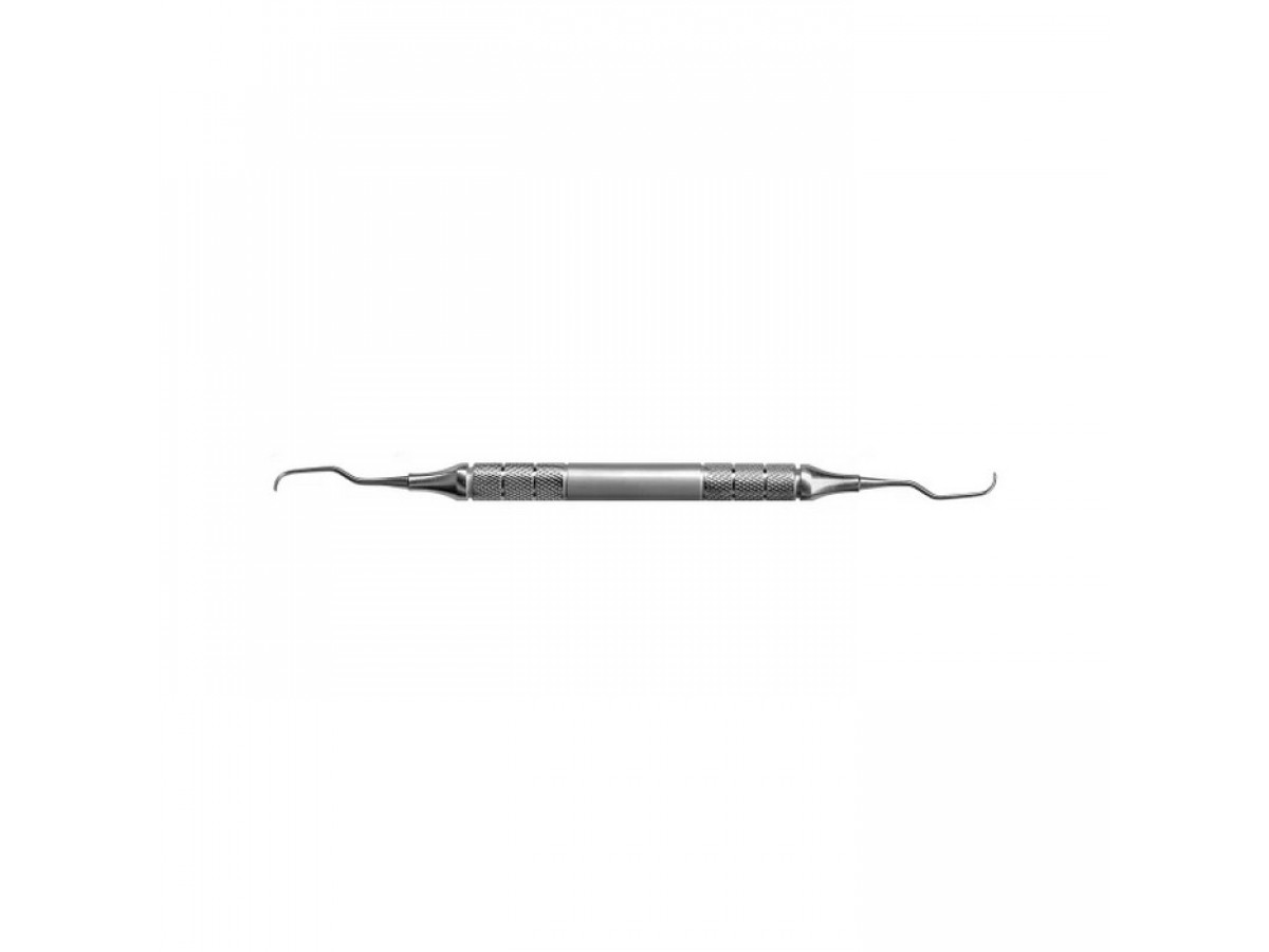 Средний угол рабочей части облегчает доступ к премолярам и молярам. Ручка с ретенционным узором обеспечивает удобство использования.