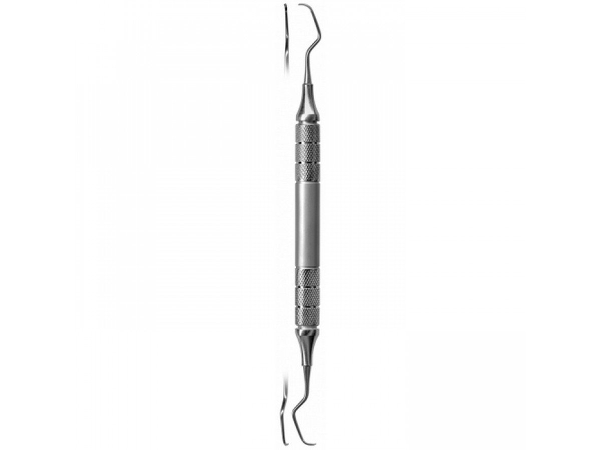 Средний угол рабочей части облегчает доступ к премолярам и молярам. Ручка с ретенционным узором обеспечивает удобство использования.