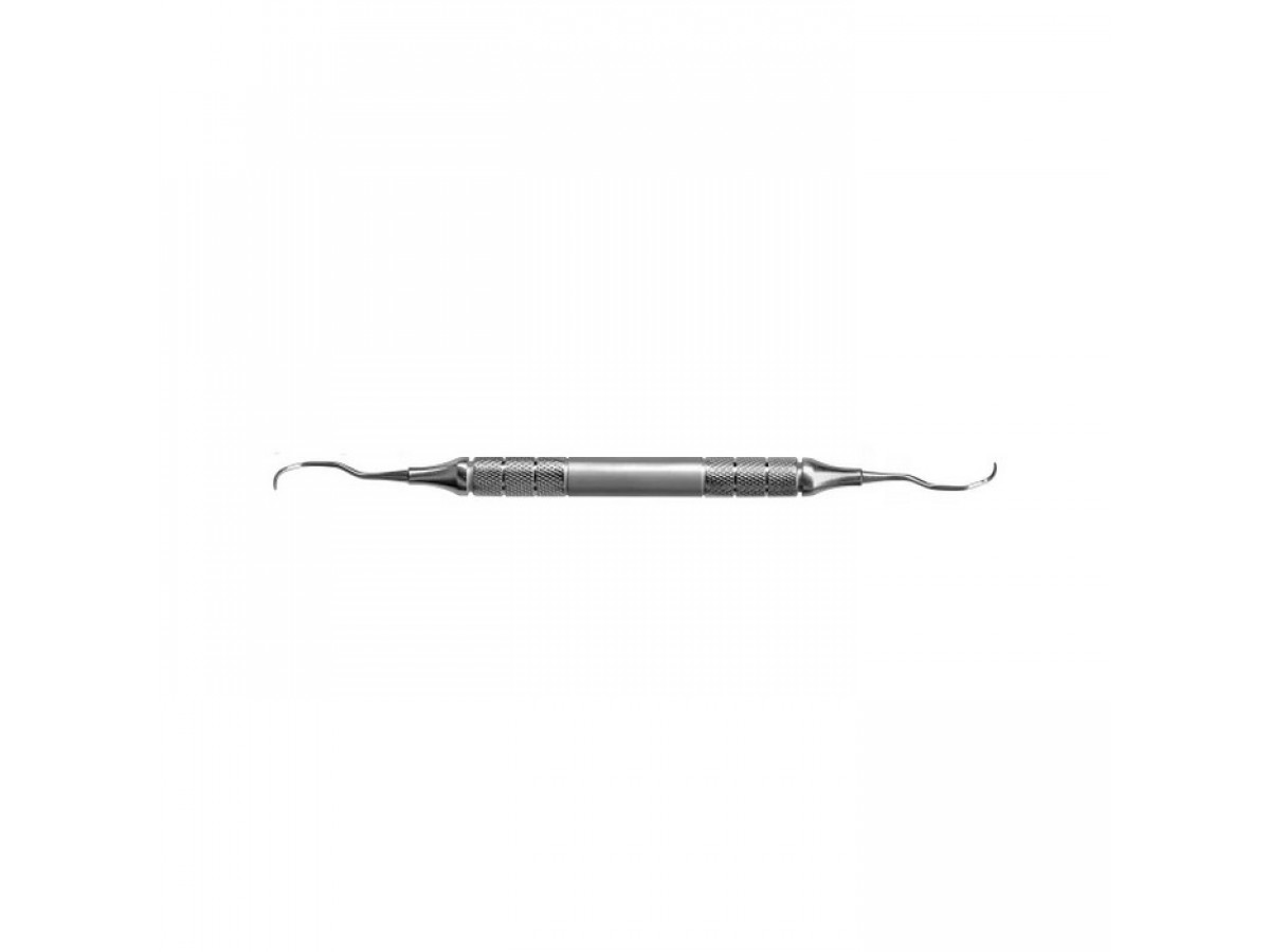 Длина и угол рабочей части облегчает доступ к молярам и сложным участкам корней. Ручка с ретенционным узором обеспечивает удобство использования.