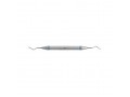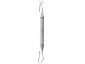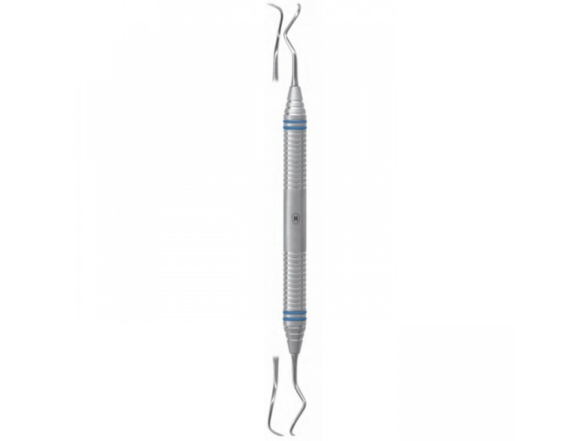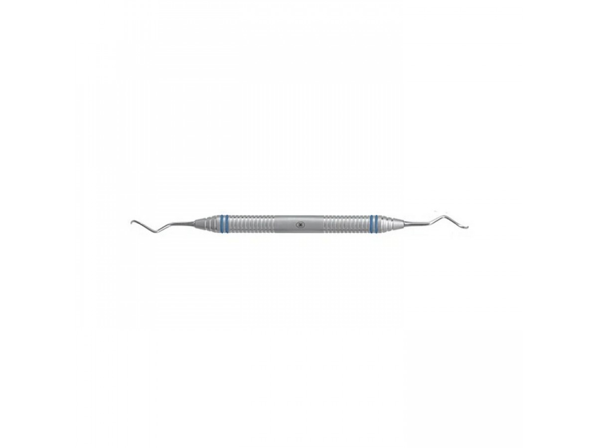 Длинная рабочая часть, одинаковой формы и размеров с обеих сторон, зеркально отраженная. Угол 30°, достигает глубины до 5,5 мм, ширина лезвия 1,1 мм. Ручка с ретенционным узором обеспечивает удобство использования.