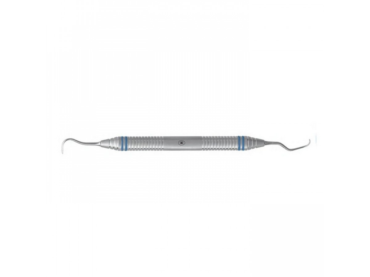 Пародонтологический инструмент, с одной стороны серповидный скейлер, с другой – универсальная кюрета. Ручка с ретенционным узором обеспечивает удобство использования.