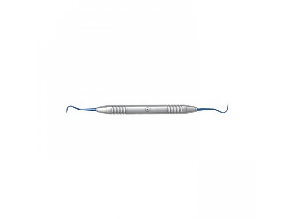 Титановая рабочая часть позволяет чистить имплантаты без риска повреждений. Облегченная ручка с ретенционным узором.