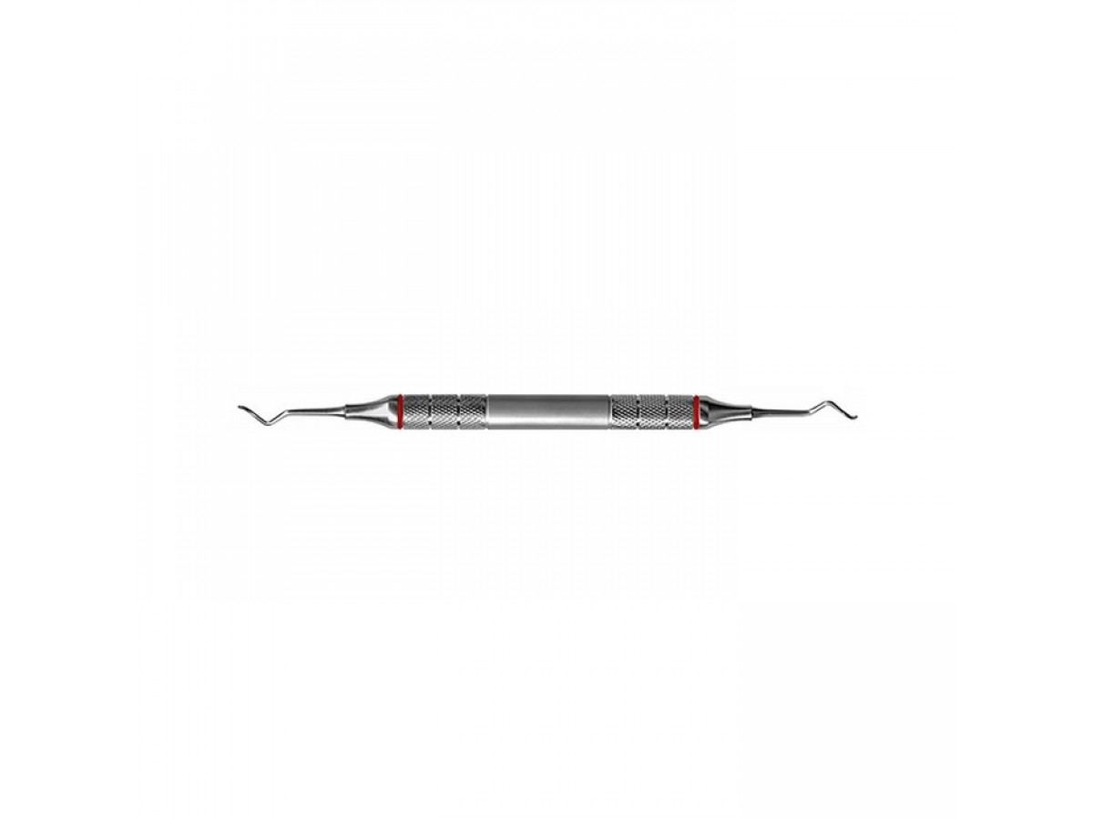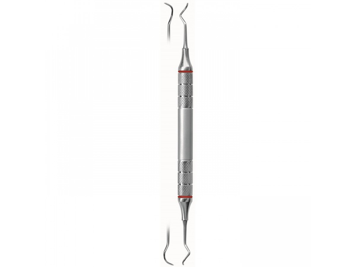 Титановая рабочая часть позволяет чистить имплантаты без риска повреждений. Облегченная ручка с ретенционным узором.
