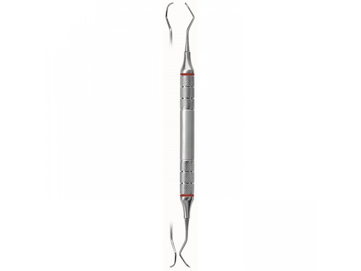 Титановая рабочая часть позволяет чистить имплантаты без риска повреждений. Облегченная ручка с ретенционным узором.