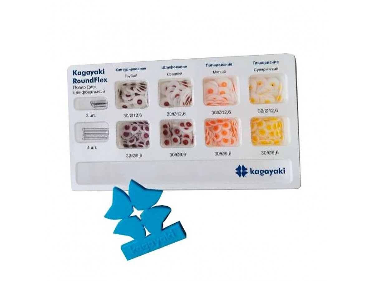 Набор полиров дисков РоундФлекс в ассортимене - 240 шт (9201). RoundFlex - диски шлифовальные, предназначены для формирования конечной, анатомической формы пломб, выравнивания шероховатостей и придания блеска, а также сглаживания перехода пломба-зуб. В систему Kagayaki RoundFlex™ входят диски с абразивными частицами различного размера и зернистости, для контурирования, финирования и полировки до зеркального блеска композитов, стеклоиономеров, амальгамы, полудрагоценных и драгоценных металлов. Производитель: Kagayaki, Россия.
