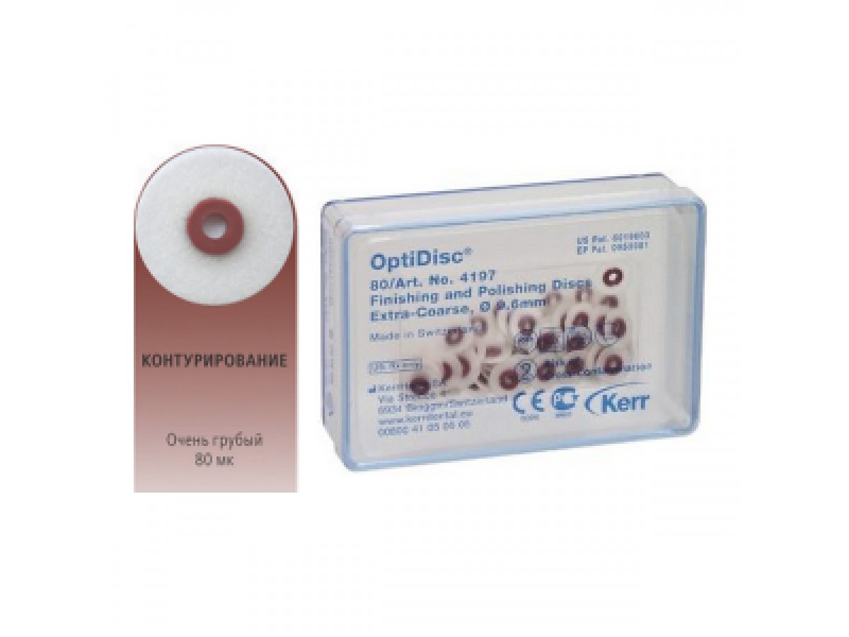 OptiDisc - это эффективная система дисков для финирования и полировки, позволяющая придать реставрации зеркальный блеск, сходный с блеском естественных тканей зубов. В систему OptiDisc® входят диски с абразивными частицами различного размера для контурирования, финирования и полировки до зеркального блеска композитов, стеклоиономеров, амальгамы, полудрагоценных и драгоценных металлов. Производитель: Kerr, Швейцария.