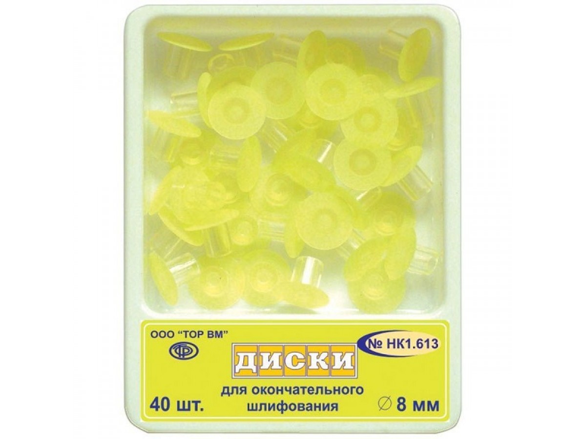 ТОР-НК1.613 - данный набор состоит из дисков, основанных на лавсановом материале. Достаточно просты и удобны в применении, долговечны и эффективны. Применяются для работы с пломбами из композитных материалов, оснащены пластиковыми и металлическими втулками. Производитель: ТОР ВМ, Россия
