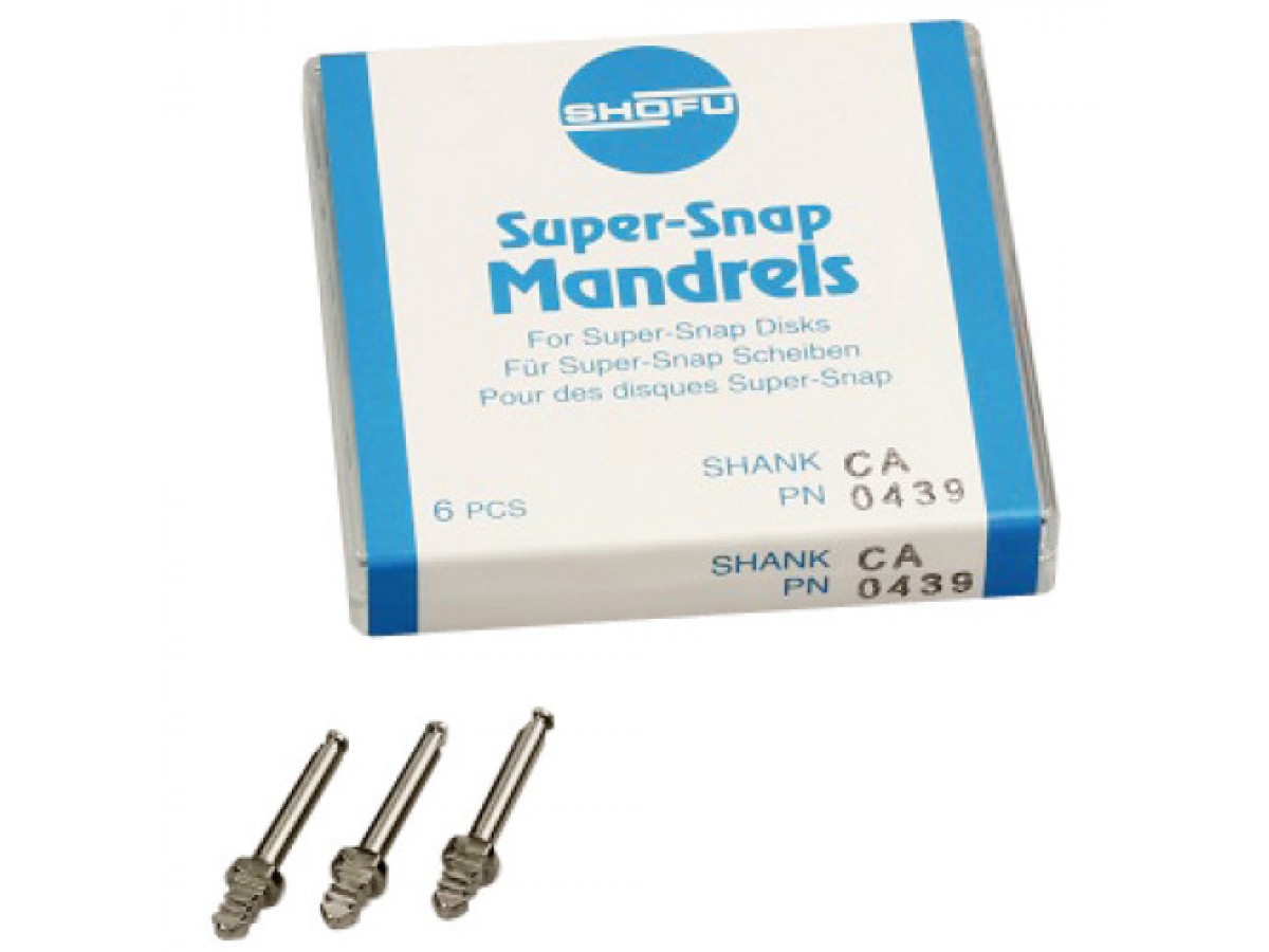 Mandrell Super-Snap 0439 - это металлические держатели для дисков Super-Snap и Superbuff, необходимые для крепления в угловом или турбинном наконечнике дисков Super-Snap и Superbuff. Металлические держатели являются многоразовыми и подвергаются автоклавированию, а пластиковые предназначены для одноразового использования. Производитель: Shofu, Япония.