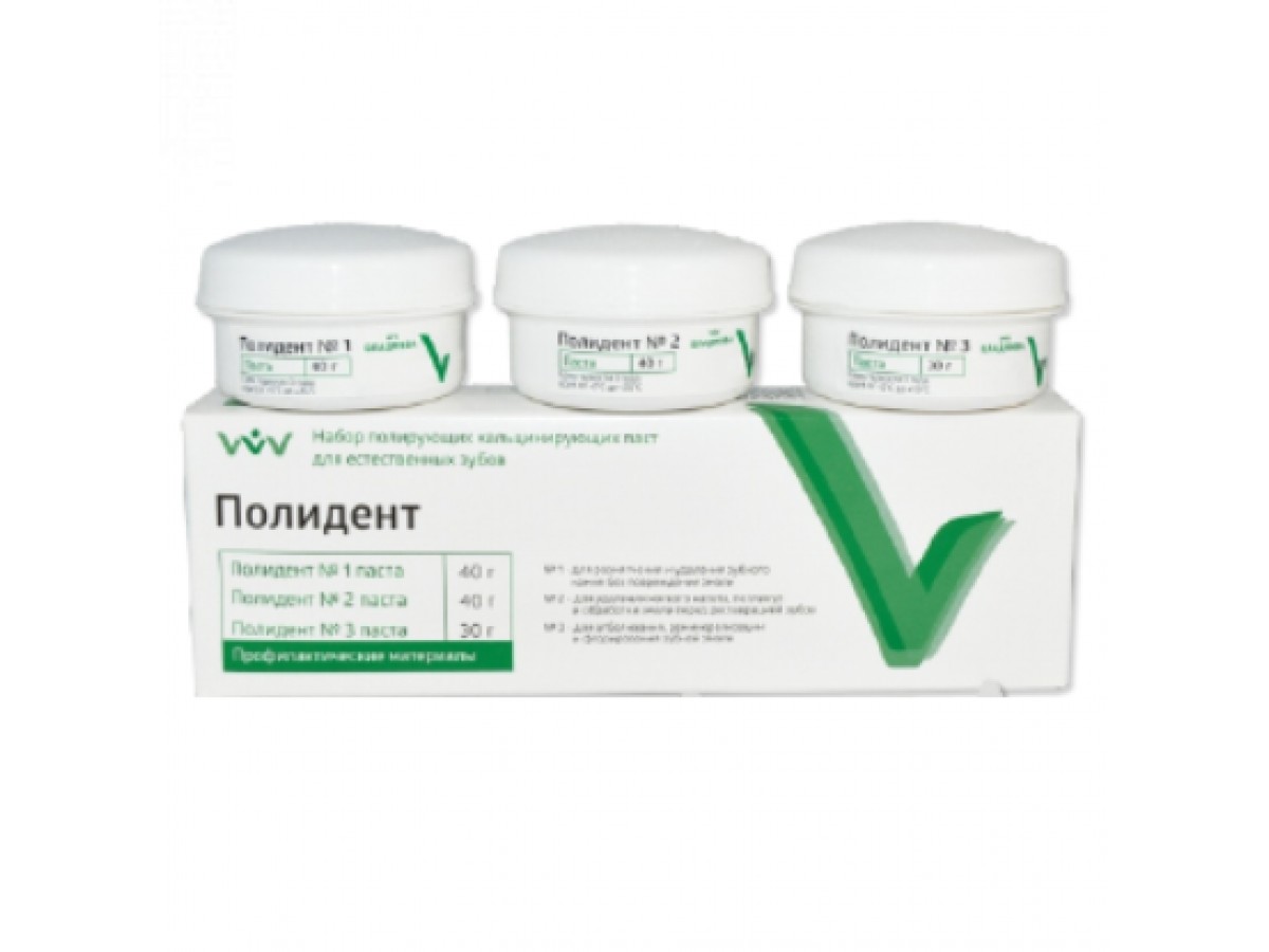 - Полидент №2 –для удаления мягкого налета, пелликул и обработки эмали перед реставрацией зубов, герметизацией фиссур, отбеливанием зубов, а также для профилактики кариеса методом снятия зубных отложений.