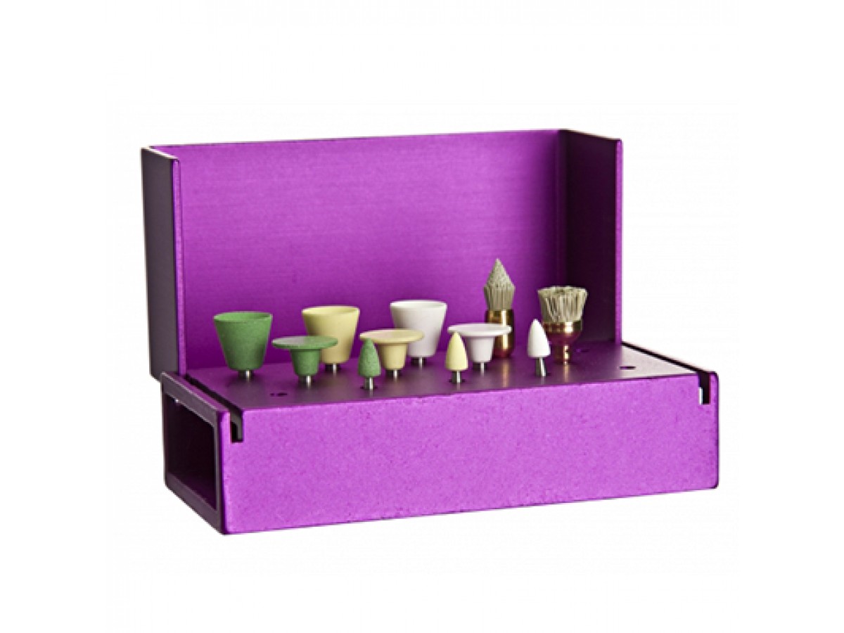 - Полировочные головки Jiffy малой абразивности (Fine): чашеобразная, колесовидная, пламевидная – по 1 шт.